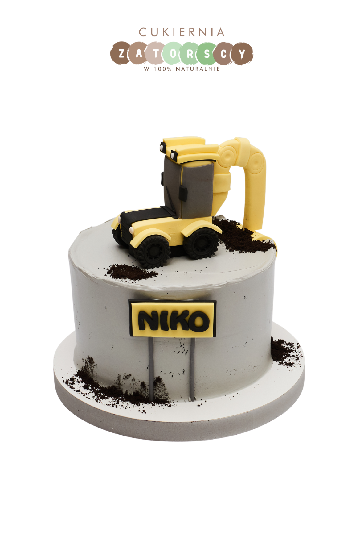 Tort dla chłopca z koparką w kremie. Dostępny na zamówienie z możliwością personalizacji wielkości oraz smaku tortu (do wyboru z listy w karcie produktu). Szczegółowy opis smaków można znaleźć poniżej.
