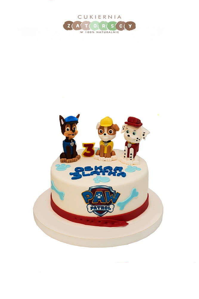 Tort dla dzieci chłopca psi patrol z figurkami. Dostępny na zamówienie z możliwością personalizacji wielkości oraz smaku tortu (do wyboru z listy w karcie produktu). Szczegółowy opis smaków można znaleźć poniżej.