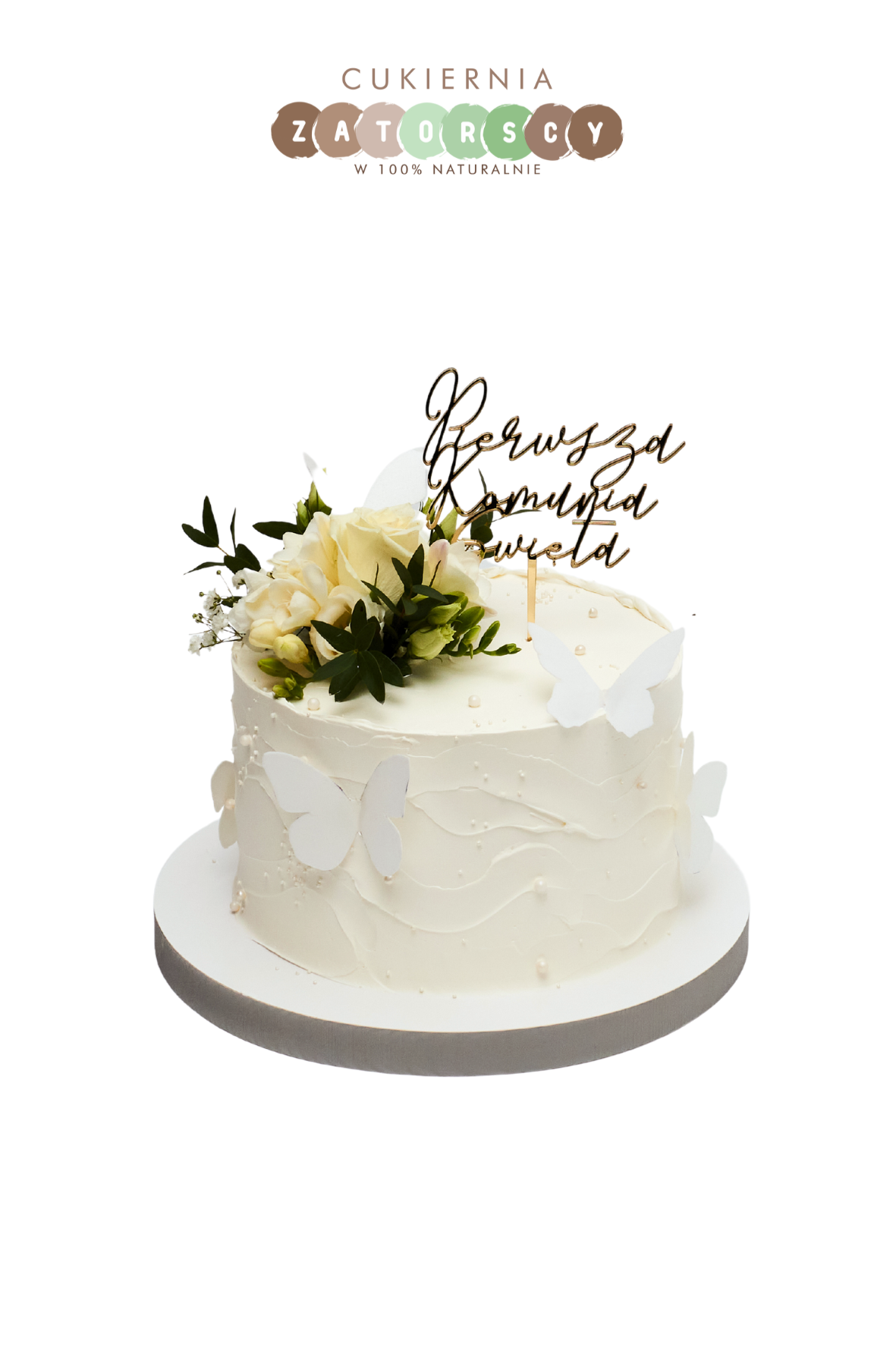 Tort Komunijny z Żywymi Kwiatami Motyle