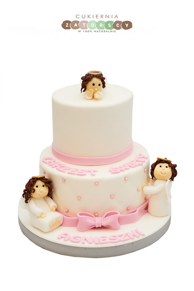 Tort na Chrzest dla Dziewczynki z Aniołkami