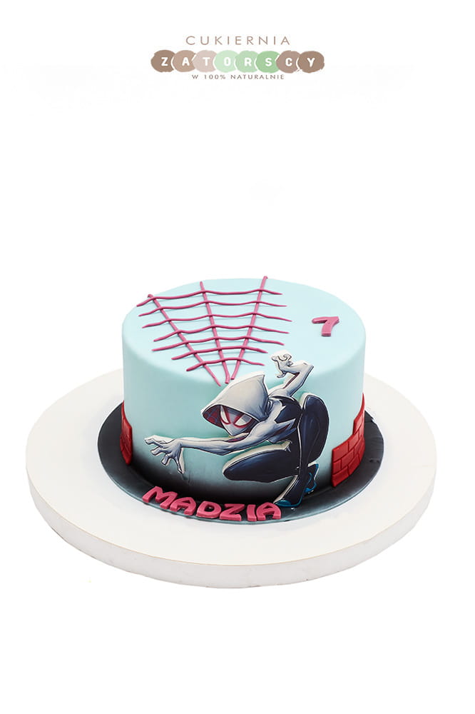 Tort dla dzieci Spider Woman dla dziewczynki, dostępny na zamówienie z możliwością personalizacji napisu, wielkości oraz smaku tortu (do wyboru z listy w karcie produktu). Szczegółowy opis smaków można znaleźć poniżej.