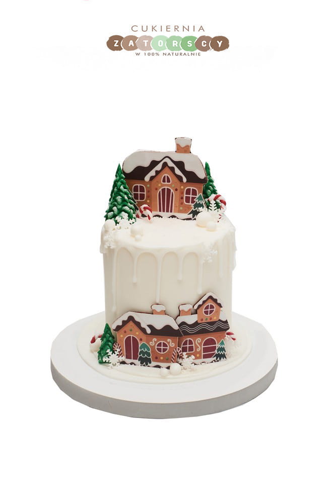 Tort Świąteczny Domki Zima