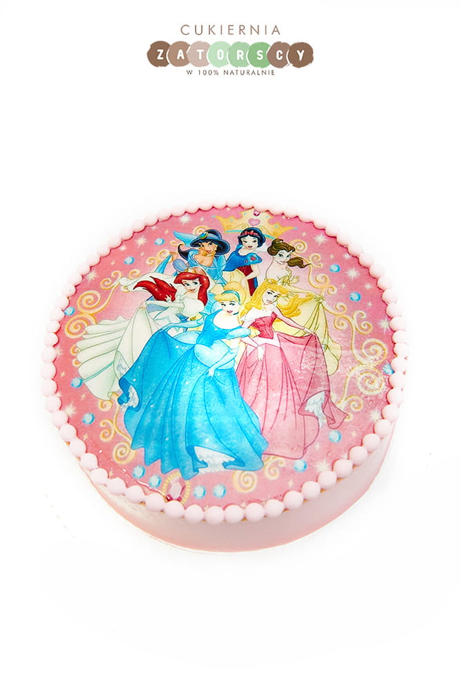 Tort dla dzieci z opłatkiem z księżniczkami Disneya. Dostępny na zamówienie z możliwością personalizacji wielkości oraz smaku tortu (do wyboru z listy w karcie produktu). Szczegółowy opis smaków można znaleźć poniżej.